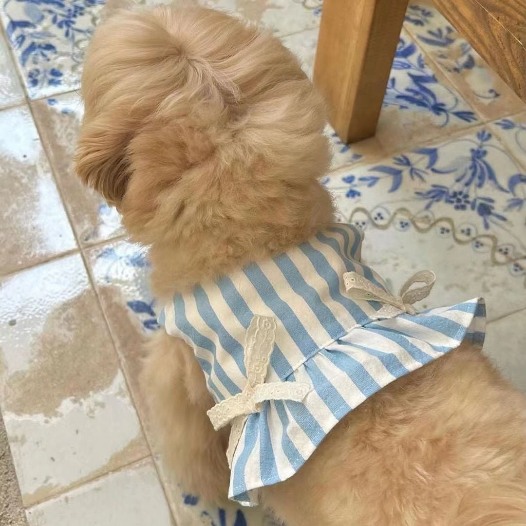 ロンドンストライプのリボンワンピース  3384
